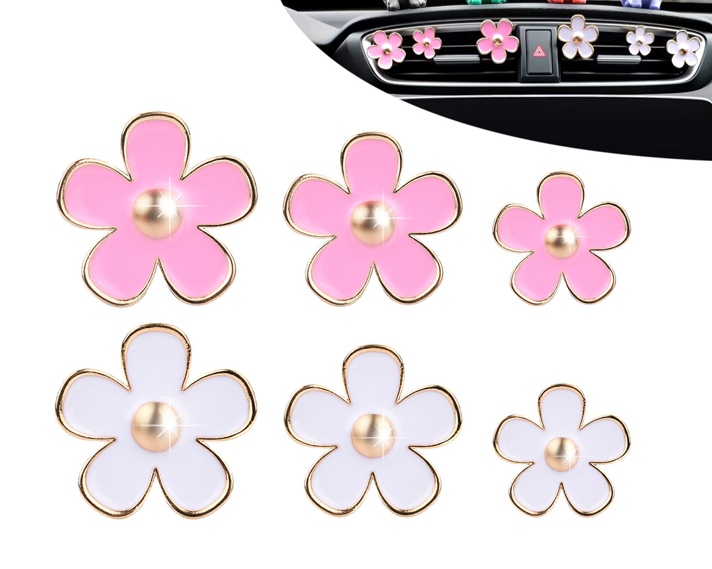 Flower Car Vent Clip Set of 6 - 4 Pieces Cute Car Essential Oil Diffuser Vent Clip and 2 Small Flower Decorative Vent Clips Pink Car Accessories