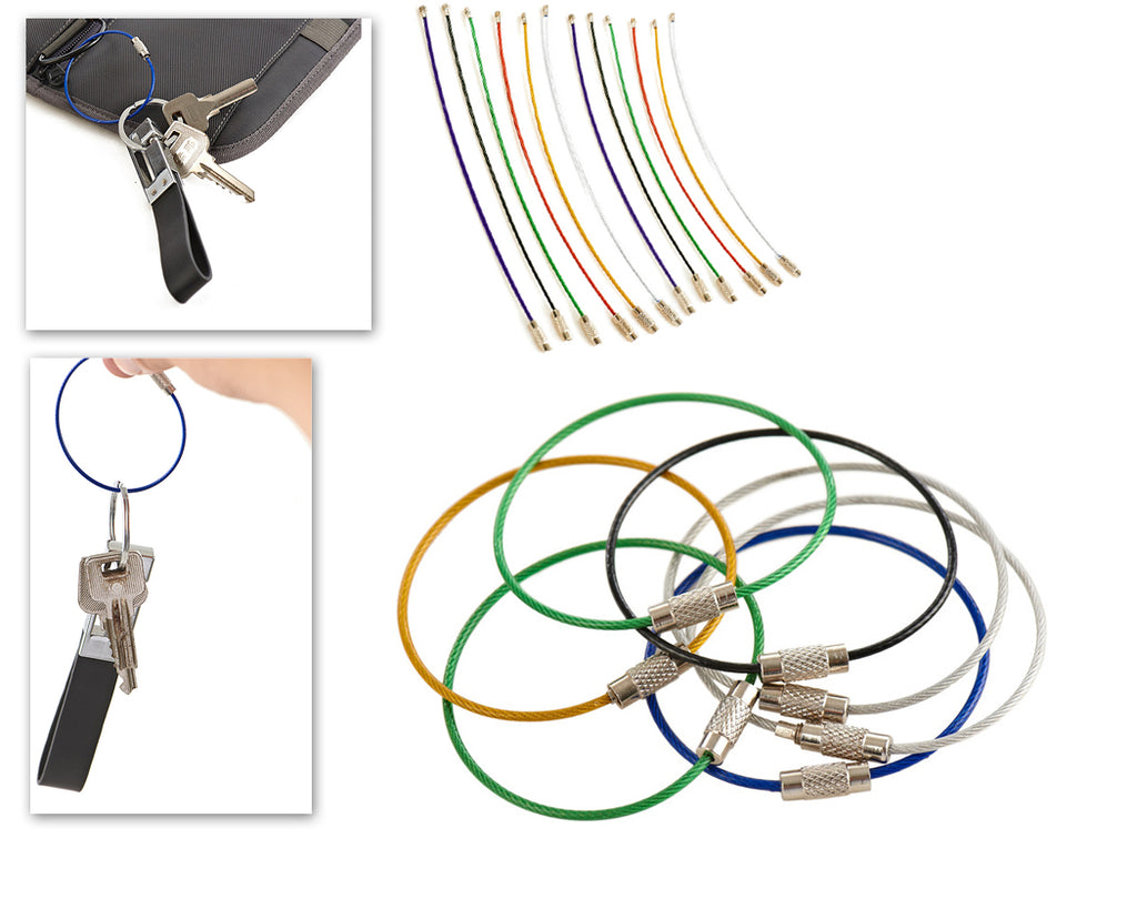 This 12 Pcs Multicolor Stainless Steel Wire Keychain is made of sturdy stainless steel with plastic cover. The 1.5mm wire cable is strong and flexible. The key rings are ideal for hanging keys, flashlight, key rings, etc.
