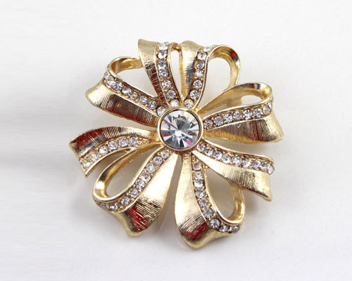 Rosette Gold Crystal Brooch Pin