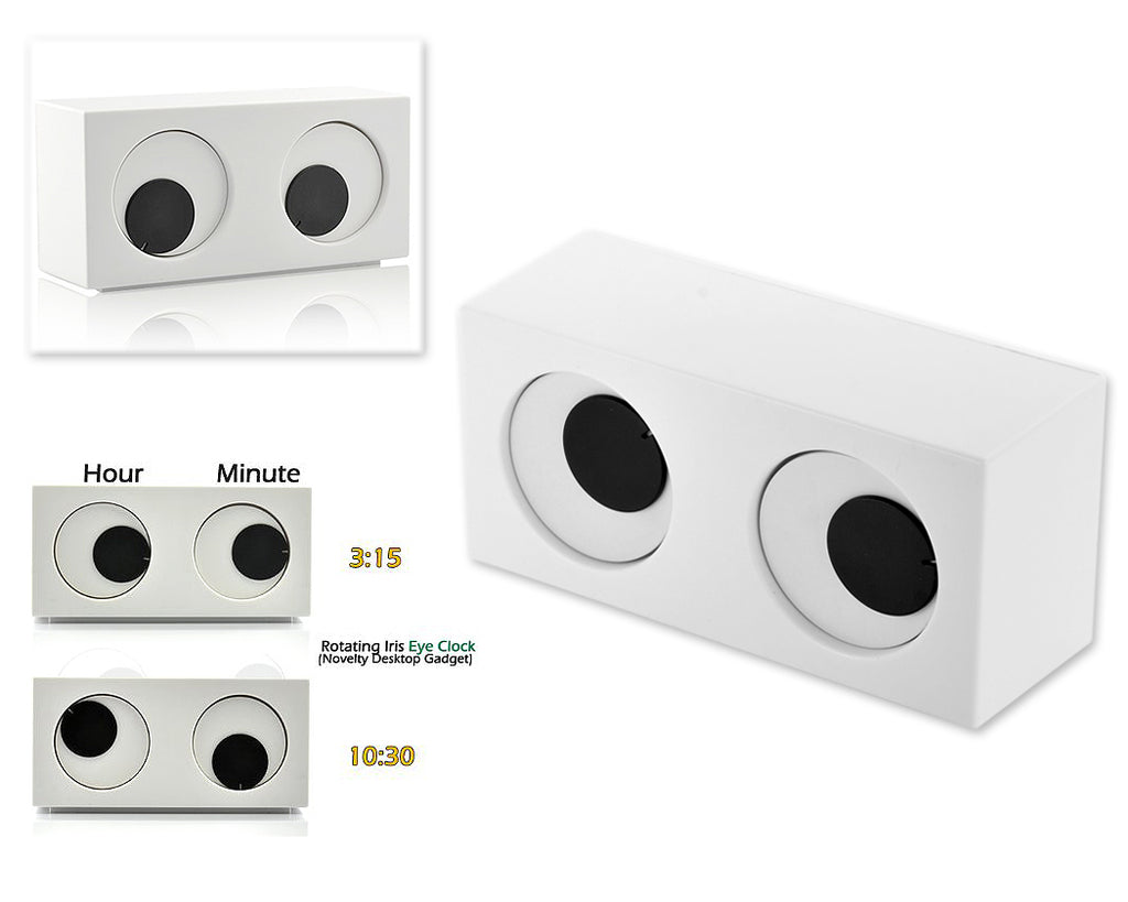 This Rotating Iris Big Eyes Clock  has a very fashionable and nice appearance. It is very funny and novelty designed with 2 big eyes. It tells the time with its rotated iris. It is suitable for decorative your living room, bed room or desk.