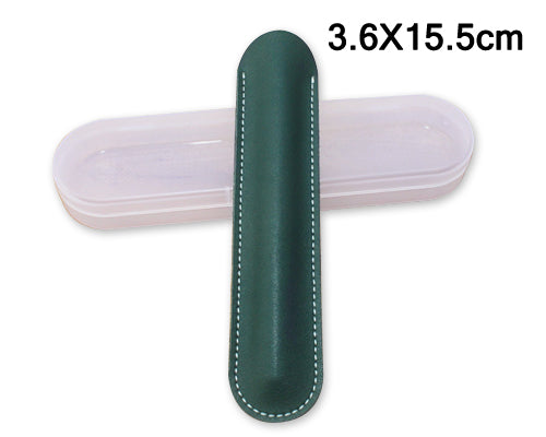 Luxury Leather Single Pen Holder with Transparent Case - Green