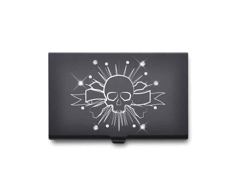 Rock Skull Bling Swarovski Crystal Card Case - Black