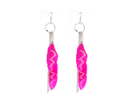 Glitter Magenta Bohemian Feather Tassel Earrings