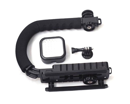 This GoPro Professional Handheld U Shape Stabilizer Mount Stand Holder with LED Video Light and Adapter w/Screw for Hero 1 Hero 2 Hero 3 Hero 3+ / Hero 3 Plus Cameras is an extremely versatile camera handle and stabilizer. It is a must have if you are trying to film any kind of action shot with a small camera like the GoPro Hero.