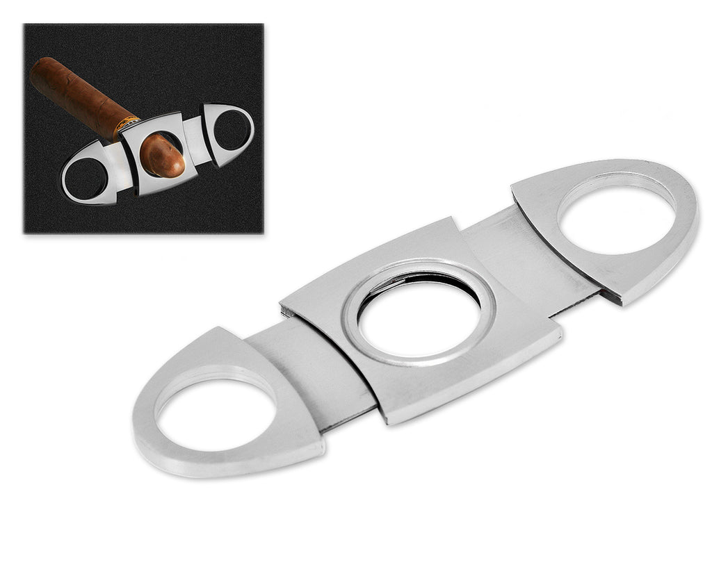 Double Guillotine Stainless Steel Cigar Cutter - Silver