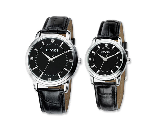 Vintage Pair of Men and Women Leather Couple Watches - Black