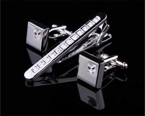 These Chic Crystal Cufflinks and Tie Clip Set - White definitely add a luxurious touch to your sleeves while walking around and mingling. These crystal cufflinks and tie bar set are the stunning accessories match with any suit and shirt you may have in your closet.
