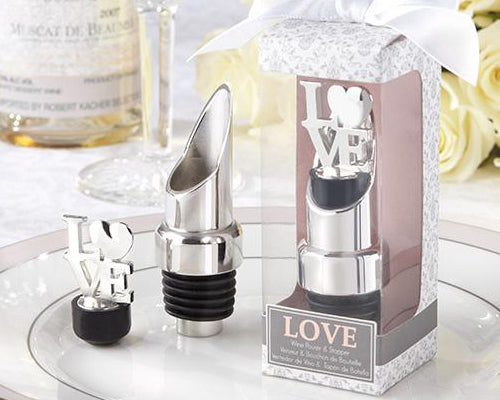 This Ture Love Wedding Favor Wine Pourer Bottle Stopper Set is the ideal gift for attendees at any wedding or other special occasion. The guests will enjoy these elegant memory-provoking trinkets each time they pour a delicious bottle of wine.