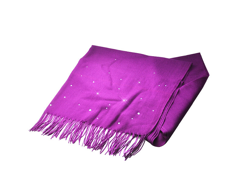 This Worsted Wool Scarf with Swarovski Crystals – Deep Purple is fall and winter fashion styling and wear this completely attention-grabbing crystal scarf. The crystal scarf is characterized by its fine, soft worsted wool fibers, provides a natural lightweight insulation and non-itch against your skin.