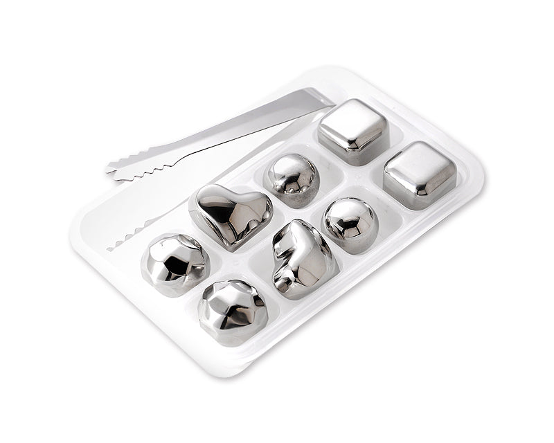 This Creative Stainless Steel Reusable Whiskey Ice Cubes Rocks Stones Chilling Ball Bar Wine Juice Soda Beer Chillers with Tong Gift - 8 Pcs Ball Heart diamond Square is made of 304 stainless steel, which is safe and durable for long time use. It can be used to chill a warm drink as well as hold an already chilled drink. They can also stay cold for hours under the proper conditions. It is great for whiskey, vodka, liqueurs, juice, ice-tea, soda, white wine and won't dilute them.