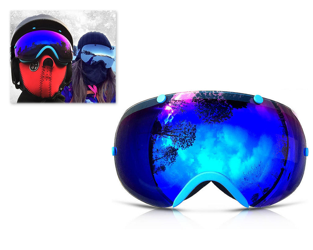 Bold Series Ski Goggles with Detachable Lens and Strap - Blue