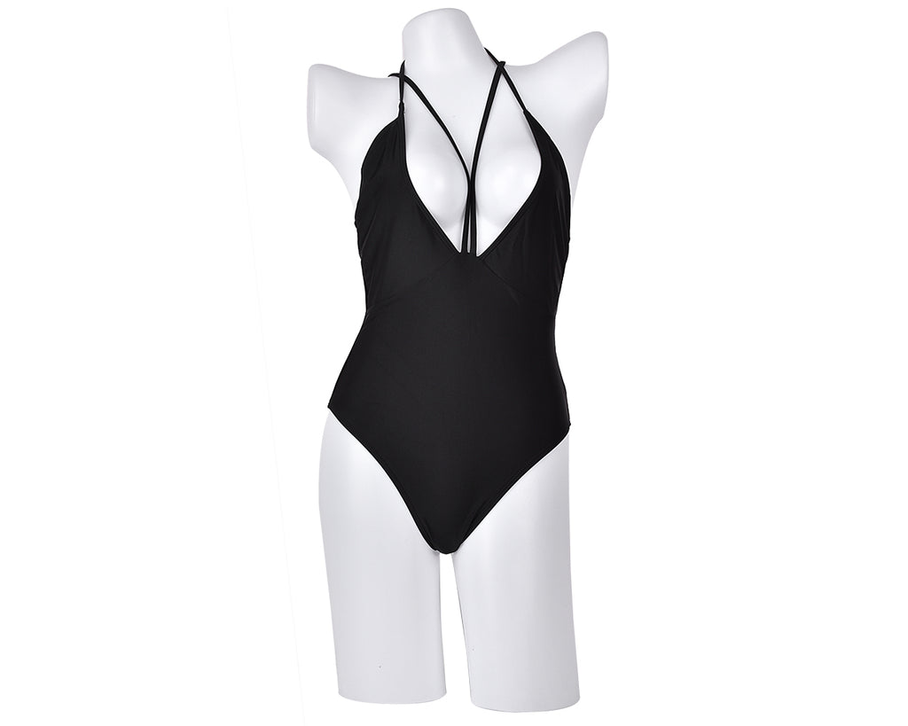 This Black Deep V Neck Halter Sexy Monokini Swimwear is made of nylon and spandex. With the exquisite backless design and bold deep plunge, this one piece swimsuit is going to make you stand out from the crowd in the coming summertime.