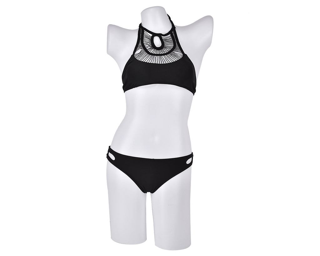 This Solid Color Halter Hollow Out Bikini Set - Black is made of polyester and spandex. With embedded push-up padding, this set of halter swimsuit provides not only style but also comfort. With the unique crochet design, this halter bikini set gives you the spotlight, no matter at the beach or the pool.