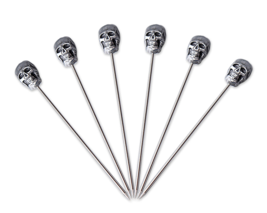 Food-grade stainless steel skull cocktail picks are helpful for holding olives while refining your drinks.